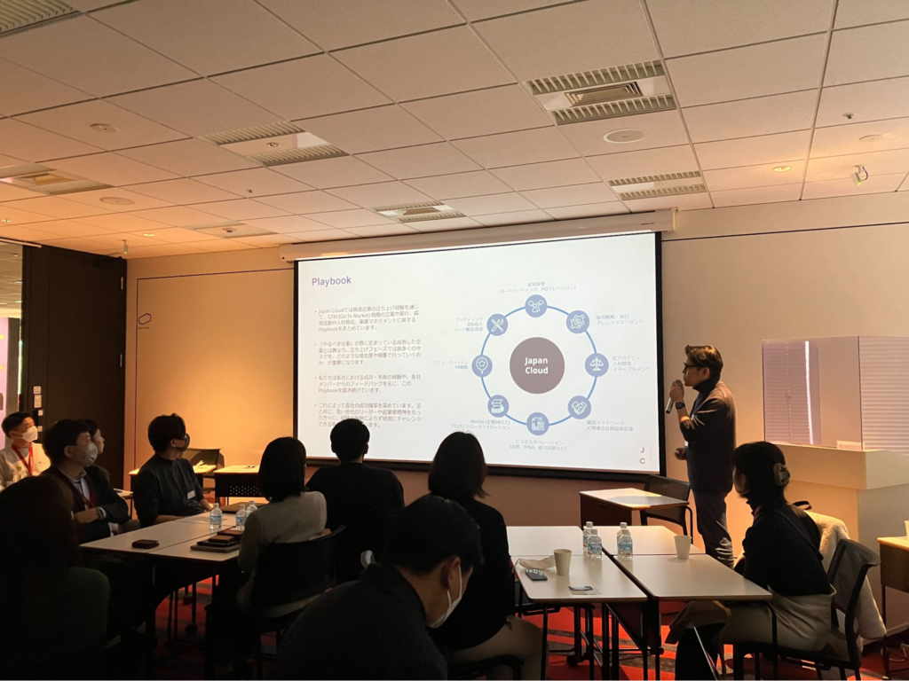 「Japan Cloudでは関連企業の立ち上げ経験を通じて、GTM (Go To Market) 戦略の立案や実行、採用活動や人材育成、事業マネジメントに関するノウハウをPlaybookとして集約しています。これを活用することで、経験の有無に関わらず積極的にトライしていただけることを目指しています。また、Playbookのフィードバックを皆さんからいただけたら助かります。現場で役立つよう、共にブラッシュアップし続けていきたいと思っています。」(鶴原)
